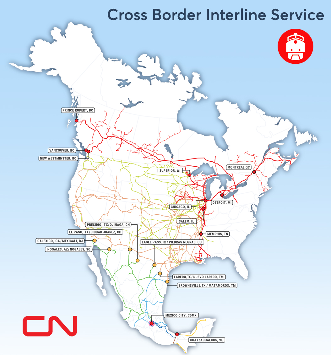 • Connect seamlessly to CN’s rail network in the U.S. and Canada, and to the Ferrosur in Mexico